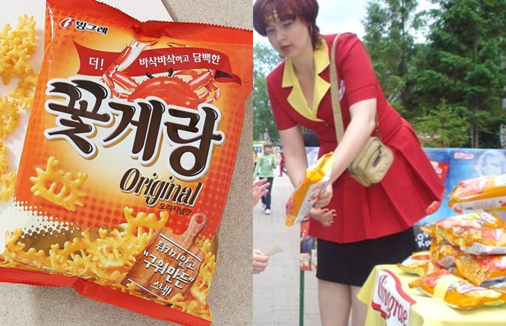 1990년대 초반 러시아 어선들이 부산항에 자주 들어오면서 꽃게랑을 처음 접한 러시아 선원들에 의해 꽃게랑은 러시아에서 좋은 반응을 얻기 시작하였습니다. 이에 본격적으로 러시아 수출을 시작한 꽃게랑은 젊은 층을 타깃으로 적극적인 마케팅을 벌인 결과 러시아 스낵 시장에서 1위를 차지하게 되었죠. 최근에는 러시아의 주요 유통업체인 마그닛에 입점하면서 그 인지도를 더욱더 넓히고 있습니다. 이에 러시아의 인기에 힘입어 꽃게랑은 러시아 국민간식이라는 타이틀로 국내에 역수출(?)되면서 '끄랍칩스'로 판매가 되고 있습니다.