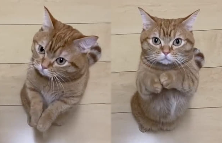 공개된 동영상속에 등장하는 고양이는 집사에게 쪼르르 걸어오더니 갑자기 두 발로 서서 앞발을 모은 뒤 무엇인가 달라는 제스처를 취하듯 두 앞발로 빌기 시작했습니다. 아마도 이 고양이는 이러한 행동을 한두 번 해본 게 아닌 거 같다는 생각이 들 정도로 너무나도 자연스럽게 빌고 있었죠.