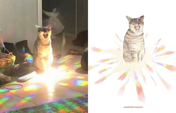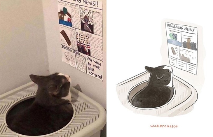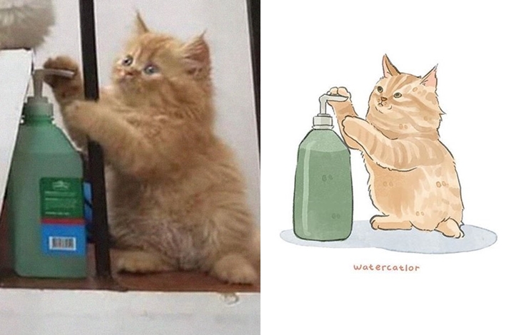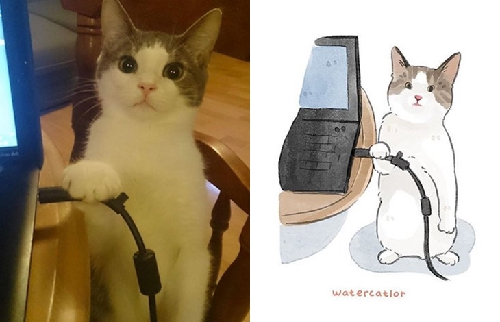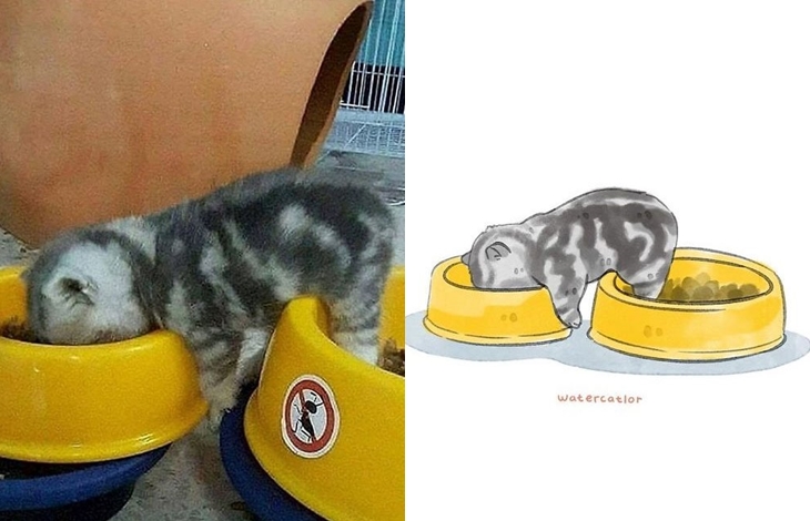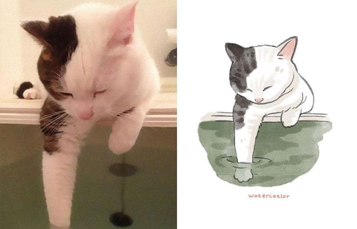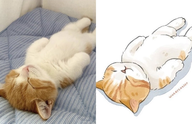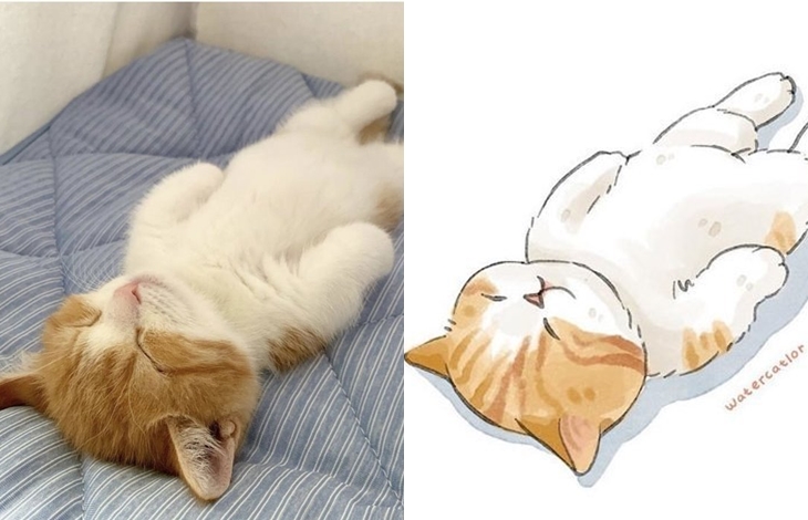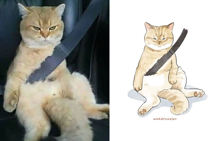 그녀는 이 밖에도 일자로 누워 있워 자는 고양이, 목욕물을 체크하는 고양이, 안절 벨트를 하고 있는 고양이 등 누구나 한 번쯤 인터넷을 통해 화제가 되고 있는 유명한 고양이 관련 짤들을 일러스트로 표현해 자신의 SNS를 통해 공유하고 있습니다. 원본 사진보다 더 깜찍하다는 평가를 받고 있는 그녀의 독특한 고양이 사랑이 만들어낸 일러스트 작품들 과연 어떤 모습을 하고 있는지 원본과 함께 감상들을 해보도록 하겠습니다.