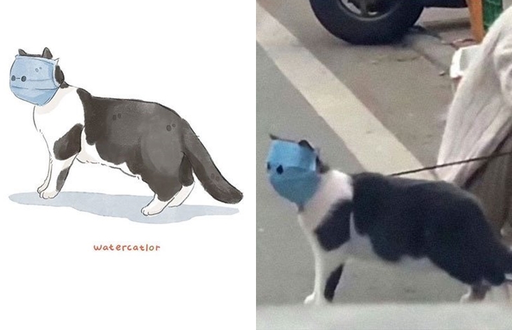 인도네시아에 살고 있는 일러스트 아티스트 '아멜리아 리즈키(Amelia Rizky)'는 인터넷에 있는 각종 고양이 짤들을 모아 일러스트로 표현하면서 SNS상에서 무려 20만 명이 넘는 팔로워를 보유하면서 크게 화제가 되고 있습니다. 특히 최근 코로나19가 확산되면서 마스크를 쓰고 외출한 고양이의 짤을 자신만의 독특한 색감으로 표현한 일러스트는 그녀를 유명하게 만들었죠.