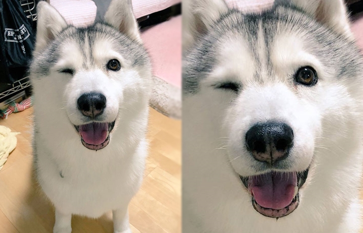 네티즌이 공개한 사진 속에 등장하는 허스키는 정말 개라고 믿기지 않을 정도로 다양한 표정들을 담고 있죠. 그중에서 많은 네티즌들을 설레게 했던 사진이 바로 '개 윙크'를 날리고 있는 허스키의 표정이라고 할 수 있습니다.