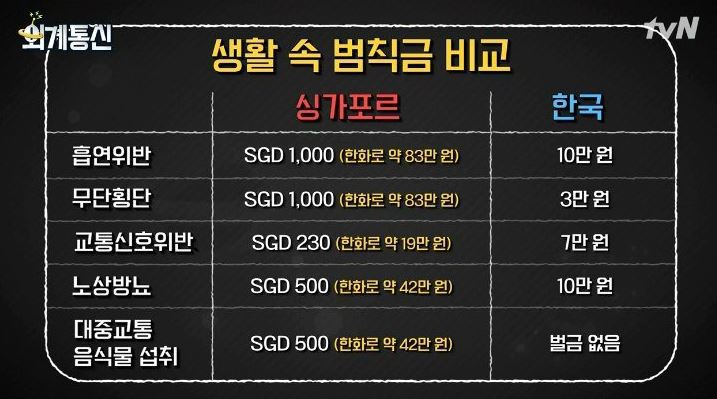싱가포르는 외국인이든 내국인이든 상관없이 법 집행이 매우 엄격하기로 소문난 곳으로 길거리에서 담배꽁초나 작은 쓰레기 하나라도 잘못 버리다가 적발이 되면 인정사정없이 법원에 기소가 될 정도라고 하는데요. 처음 쓰레기를 무단 투기하다 적발이 될 경우 우리나라 돈으로 최대 약 170만 원이 넘는 벌금이 부과되죠. 여기에 만약 두 번째로 쓰레기를 버리다 적발이 될 경우에는 약 340만 원의 벌금과 함께 공공장소 청소와 같은 사회봉사 명령을 받습니다.