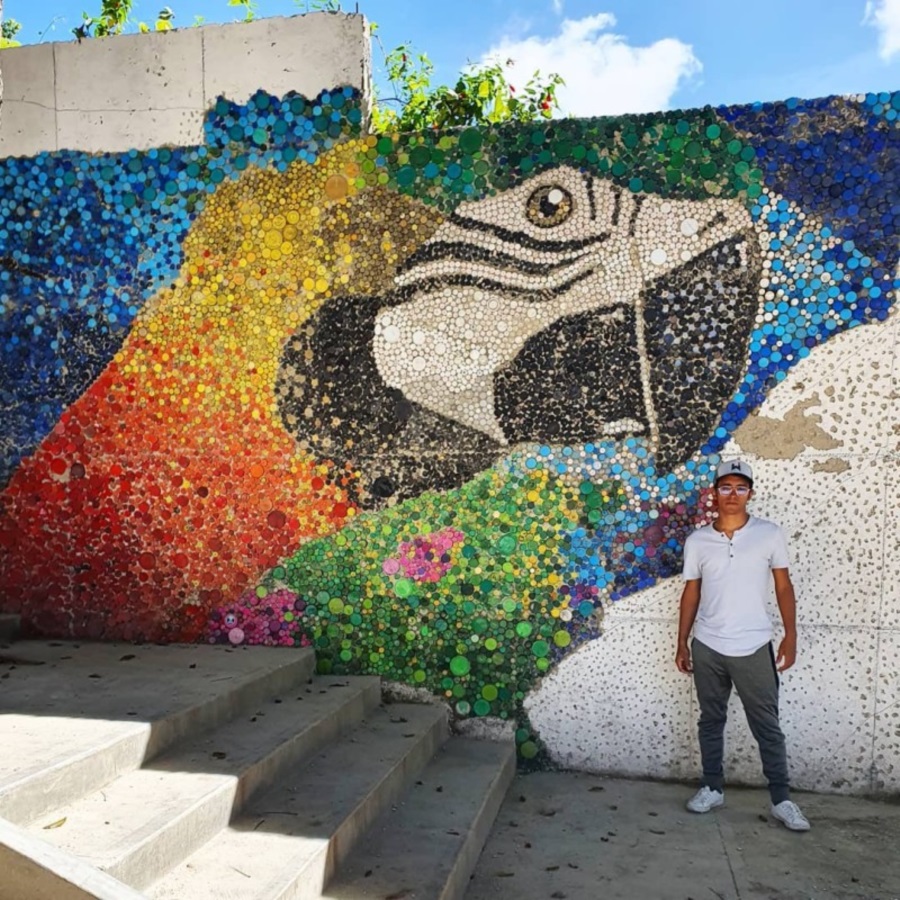 베네수엘라 출신의 '오스카 올리바레스(Oscar Olivares)'가 바로 그 주인공입니다. 오스카는 지구 환경 문제의 심각성을 알리기 위한 이색적인 프로젝트를 진행했습니다. 그 프로젝트의 일환으로 완성된 게 바로 거대한 벽화로, 그는 버려진 플라스틱 병뚜껑을 활용해 낙후된 공원을 새롭게 탈바꿈하는 건 물론이고 환경 문제에 대한 심각성을 알리고자 이번 벽화 프로젝트를 실행하게 되었죠. 45미터 높이에 달하는 벽화를 완성시키기 위해 그는 2 달반이라는 시간을 작업하였습니다.