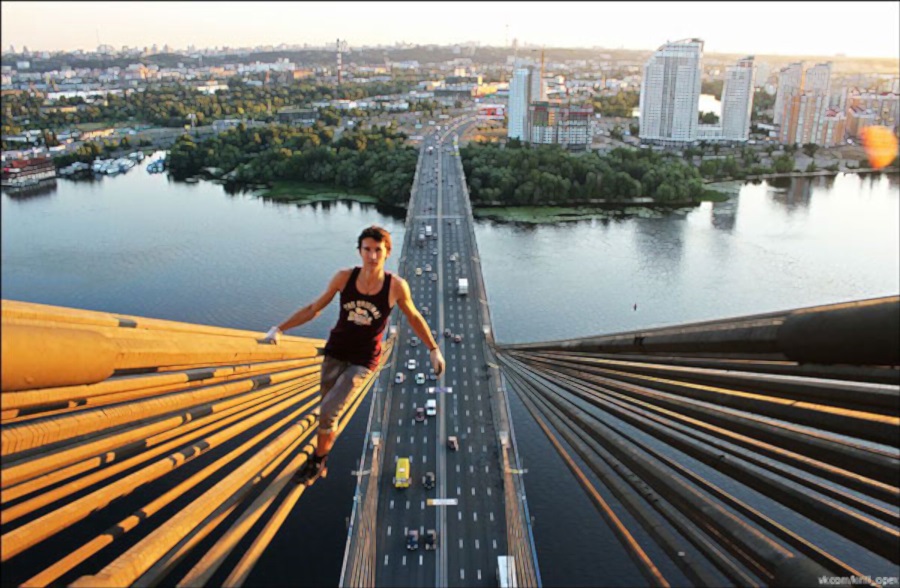 키릴은 이렇게 높은 건물이나 난간에 매달리는 위험한 인증샷을 찍으면서 그 어떤 안전 장비의 도움도 받지 않거나 사용도 하지 않는다고 하죠. 가끔 미끄러짐 방지를 위해서 장갑 정도만 사용을 하고 있다고 하는데요. 이렇게 독특한 방식으로 인증샷을 찍는 그는 맨손으로 높은 곳에 오를 때 분명 두려움도 있지만 자신감으로 극복하고 있다고 이야기를 하고 있죠. 그렇다면 과연 그는 어떤 인증샷을 남겼길래 사람들이 '목숨 건 인증샷'이라고 부르고 있는 걸까요?