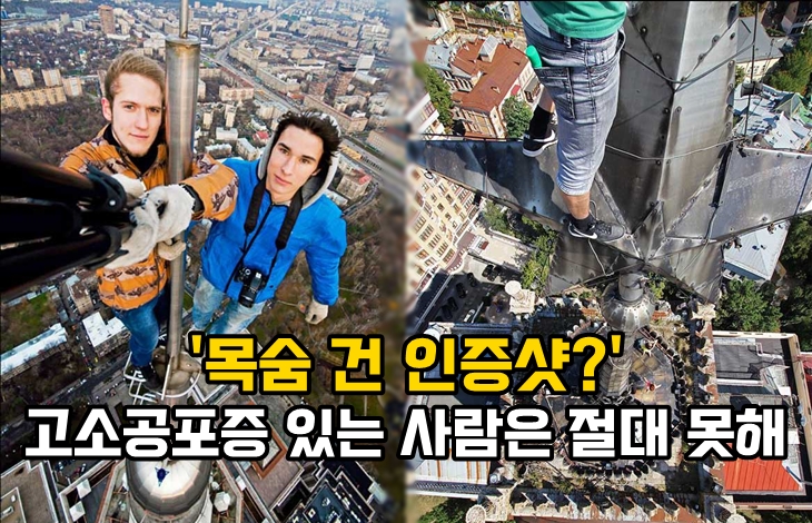 아마도 고소공포증이 있으신 분들이라면 사진만 보는 것만으로도 기겁할만한 인증샷으로 최근 SNS 등을 통해서 논란이 되고 있습니다. 러시아 모스크바에 살고 있는 '키릴 오레쉬킨(kirill Oreshkin)'이라는 청년은 높은 건물의 난간에 매달리거나 건물 꼭대기가 올라가 인증샷을 남기면서 일명 '목숨 건 인증샷'이라는 제목으로 화제가 되고 있습니다.
