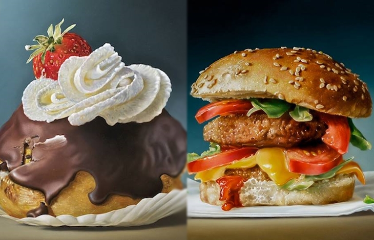 특히 그는 다양한 음식들을 주재로 극사실주의 작품들을 만들고 있습니다. 햄버거, 샌드위치, 감자튀김, 샐러드등 우리 주변에서 쉽게 볼 수 있고 주로 접할 수 있는 음식들을 작품으로 표현하고 있죠. 어떻게 보면 그는 너무나도 평범한 이러한 음식들을 작품으로 표현하면서 모든 재료들이 작품이 될 수 있다는 걸 이야기하는 듯한데요. 그렇다면 과연 극사실주의의 대중화를 이끌었다고 평가받고 있는 그의 작품들은 어떤 수준인지 함께 감상해보도록 하겠습니다.