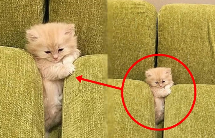 공유된 사진을 보면 소파 방석 틈 사이에 아기 고양이가 빠져 있는 걸 볼 수 있습니다. 아마도 아기 고양이는 소파에서 놀다 그만 틈에 빠지게 되었고 생각보다 깊은 틈에서 혼자 빠져나오지 못해 모든 걸 포기한 듯 집사가 꺼내 주기만을 기다리고 있는 듯하죠.