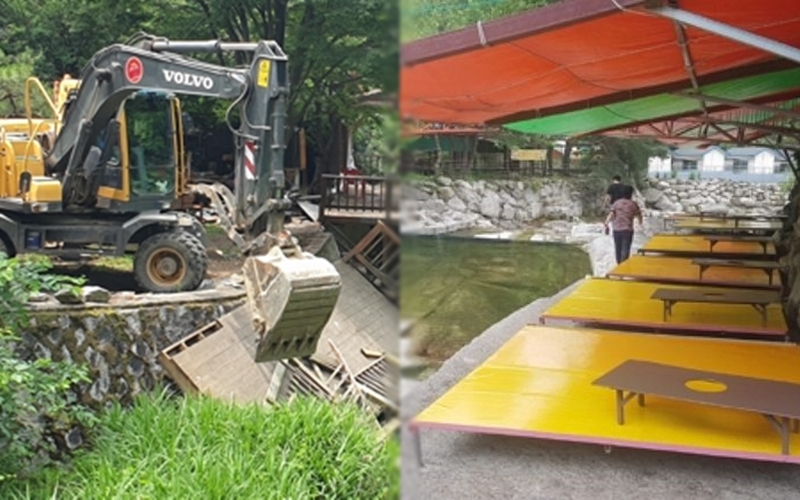 휴가철 계곡을 찾아 식당에서 밥이라도 한번 먹으려고 하면 가격에 놀랄 때가 많습니다. 토종닭 세트 4인 기준 11만 원~19만 원 여기에 자릿세는 별도인 경우들이 많았죠. 계곡을 찾은 피서객들이 비싼 바가지요금에도 불구하고 '울며 겨자 먹기'로 식당을 이용했던 이유는 쉴만한 곳이면 모두 평상이나 파라솔을 깔아놓고 영업을 하고 있던 불법 점유 음식점들 때문이었습니다. 특히 이러한 불법 점유 음식점들은 피서철만 되면 업주들은 당당히 바가지요금을 요구해 시민들의 불만은 높아져만 가는 상황이었죠.