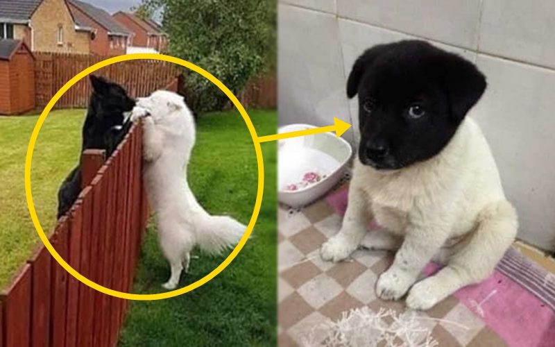 사연은 이렇습니다. 커뮤니티를 통해 공개된 사진 속에 등장하는 강아지는 얼굴은 정확히 검은색이며, 몸은 흰색으로 누가 봐도 정말 이상할 정도로 반반씩 나눠져 있습니다. 이와 같이 공개된 또 다른 사진에는 담벼락을 두고 하얀 털의 강아지와 검은 털의 강아지가 애정공세를 펼치고 있는 모습이 담겨 있죠.