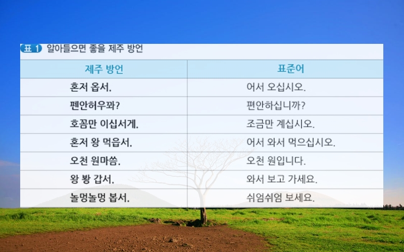한국에 존재하는 6개 사투리 중 가장 독특한 사투리가 바로 제주도 사투리라고 할 수 있습니다. 제주도 사투리는 음운, 문법, 어휘적으로 다른 사투리와 큰 차이를 보이고 있죠. 이러한 제주도 사투리는 형태나 특수성으로 인해 '훈민정음에 가장 가까운 한글'이라고 불리며 조선 초기 훈민정음이 처음 반포되었을 때와 거의 유사한 언어라고 할 수 있습니다. 하지만 제주도 사투리는 사투리가 아닌 제주어라고 불러야 한다고 하는데요.