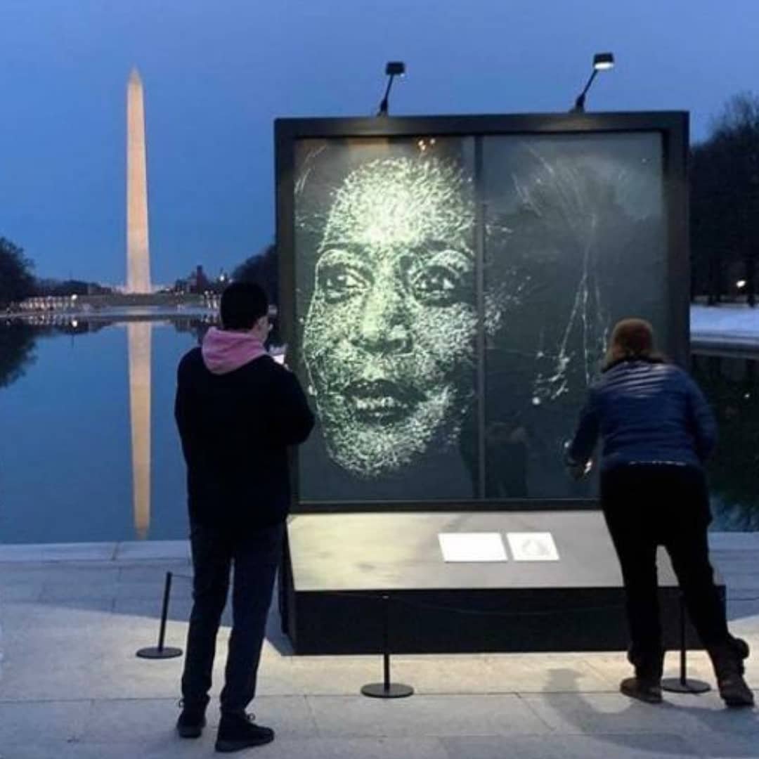 그의 작품이 화제가 되기 시작한건 워싱턴 DC에 위치한 'National Mall'에 '카멀라 해리스(Kamala Harris)'의 초상화를 만들어 전시를 하면서 였습니다. 카멀라는 흑인계 여성 부통령으로, 버거의 대표적인 작품이 되었죠. 여기에 그는 명품 브랜드 불가리 매장의 문 역시 동일한 방법으로 작품을 만들면서 이 분야에 대표적인 아티스트가 되었습니다. 유리를 깨트려 작품을 만드는 그의 능력 그렇다면 과연 어떤 작품들을 만들었는지 함께 살펴보도록 하겠습니다.