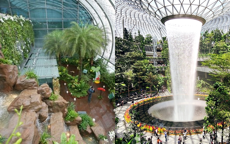 싱가포르에 위치한 창이 공항은 세계적인 수준의 시설을 갖추고 있는 공항으로 특히 아시아 공항 중에서도 '허브'역할을 하고 있는 만큼 하루에도 많은 비행기들이 이착륙을 하고 있는 대표적인 공항이라고 할 수 있습니다. 그만큼 창이 공항은 이색적인 내부 인테리어로도 유명하죠. 창이 공항 내부에는 야자수 나무를 비롯한 비단잉어가 헤엄치는 연못, 그리고 여행객들의 시원함을 위한 분수까지 공항 내부에 자연 친환경적인 시설까지 갖추고 있어 하나의 식물원을 연상케 하고 있습니다. 여기에 창이 공항에는 야외 수영장까지 있다고 하는데요. 경우에 지친 분들이라면 잠시 야외 수영장에서 휴식을 취해보는 것도 좋을 듯합니다.