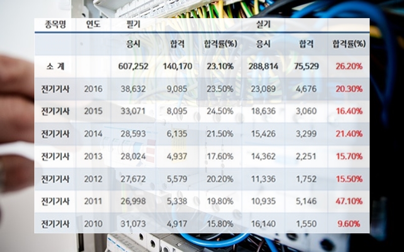 한국산업인력공단 자료에 의하면 전기기사 자격증 응시자는 9만 8792명으로 지난 5년간 응시인원은 꾸준히 늘고 있는 추세라고 할 수 있습니다. 전기기계의 설계부터 시작해 제작, 관리까지 전 과정의 업무를 하는 것으로 시험작동, 유지, 점검, 안전관리 등 다양한 업무를 보는 일을 하기 때문에 자격증 시험 자체도 방대한 양을 다루고 있죠.