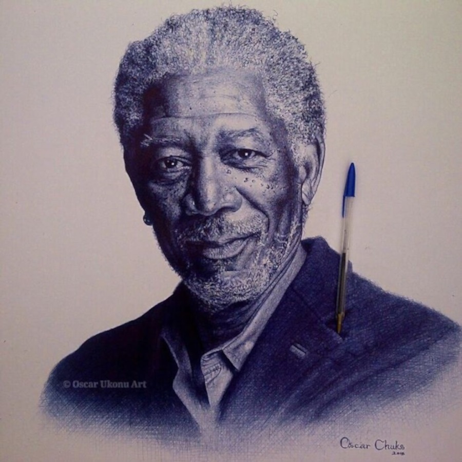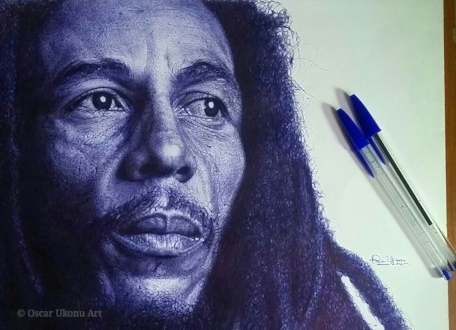 오스카는 자신의 작품을 통해서 흑인의 정체성과 함께 자부심을 표현하고 싶었다고 합니다. 작가는 펜드로잉으로 정점에 오리기 위해서는 어떻게 해야 하는지 묻는 질문에 "시간과 인내의 반복"이라고 답해 노력의 결과물이라는 걸 말하고 있습니다. 현재 그가 그린 그림은 약 20인치(50cm) 기준으로 350달러에 판매되고 있다고 하는데요. 그의 이러한 노력의 결과로 인해 현재 그는 볼펜 아티스트 중에서도 가장 뛰어난 아트스트로 평가를 받고 있습니다. 그렇다면 과연 오직 파란색 볼펜 하나로만 그렸다는 그의 초상화는 어떤 모습일까요? 함께 감상해보도록 하겠습니다.