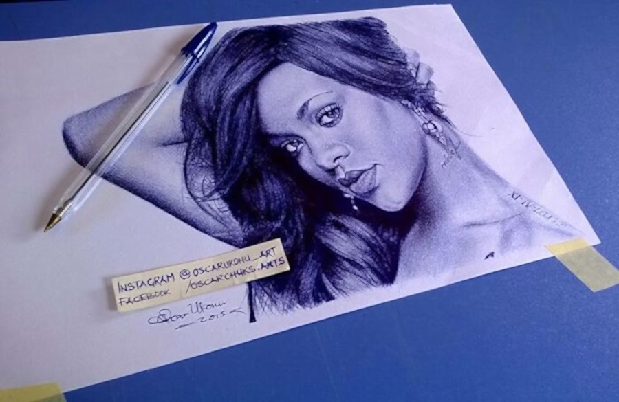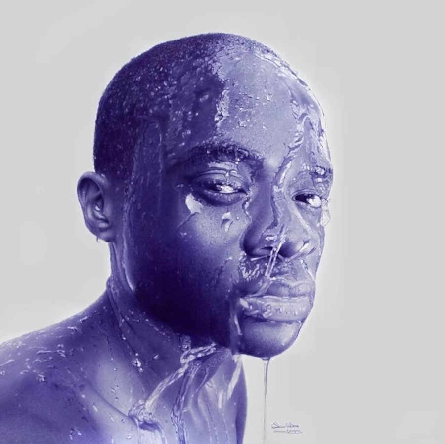 화제가 되고 있는 아티스트는 '오스카 우코누(Oscar Ukonu)'라는 아티스트로 '오스카 척스(Oskar Chucks)'라는 이름으로도 활동하고 있는 화가입니다. 오스카는 다른 다양한 필기도구들 중에서도 유독 파란색 볼펜 한 자루만을 이용해 5년이라는 시간 동안 사진과 같은 초상화를 그리면서 SNS 등을 통해 유명해지기 시작했습니다. 그가 그린 그림들은 도저히 파란색 볼펜으로만 그렸다고는 믿기지 않을 만큼 너무나도 정교해 마치 사진으로 착각이 들 정도라고 하는데요. 심지어는 얼굴에 흐르는 물까지도 파란색 볼펜으로 표현을 하면서 미친 디테일이라는 찬사까지도 받고 있습니다.