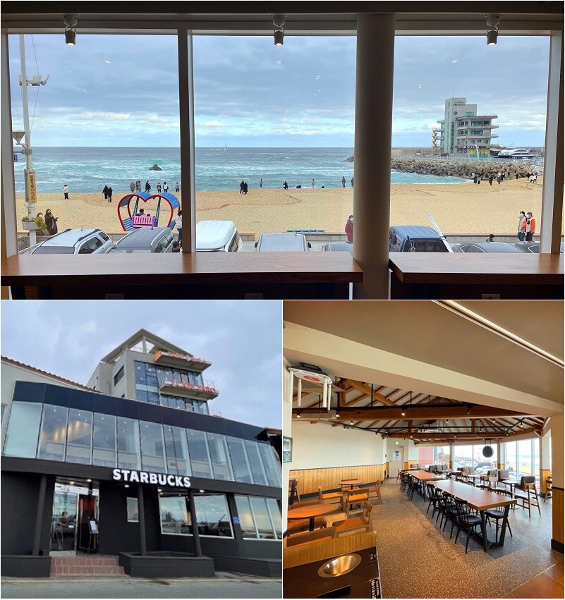 제주 함덕해변 바로 앞에 위치하고 있는 스타벅스 제주 함덕점은 넓은 주차장과 함께 함덕해수욕장 오션뷰로 항상 많은 방문객들이 찾는 제주도의 대표적인 오션뷰 스타벅스 매장이라고 할 수 있습니다. 그만큼 이용객들이 많아 2층 창가 자리 오션뷰는 경쟁이 치열하죠. 하지만 테이크 아웃을 한 뒤 함덕해변에서 커피를 즐길 수 있어 테이크아웃으로도 많은 여행객들이 찾는 매장이라고 할 수 있습니다.