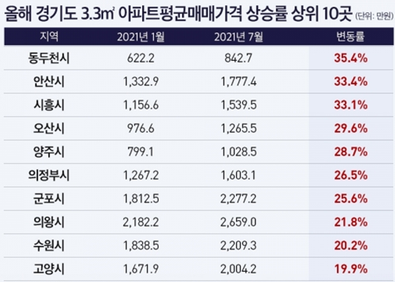 2021년 상반기에만 13% 오른 수도권 아파트 값