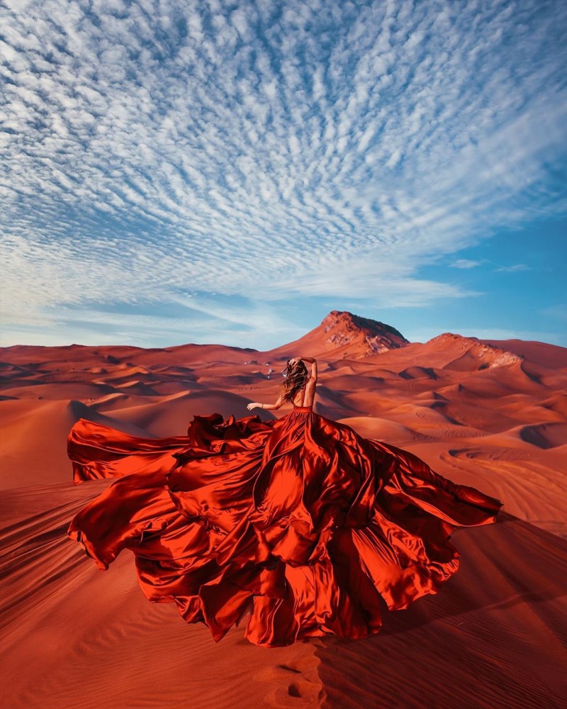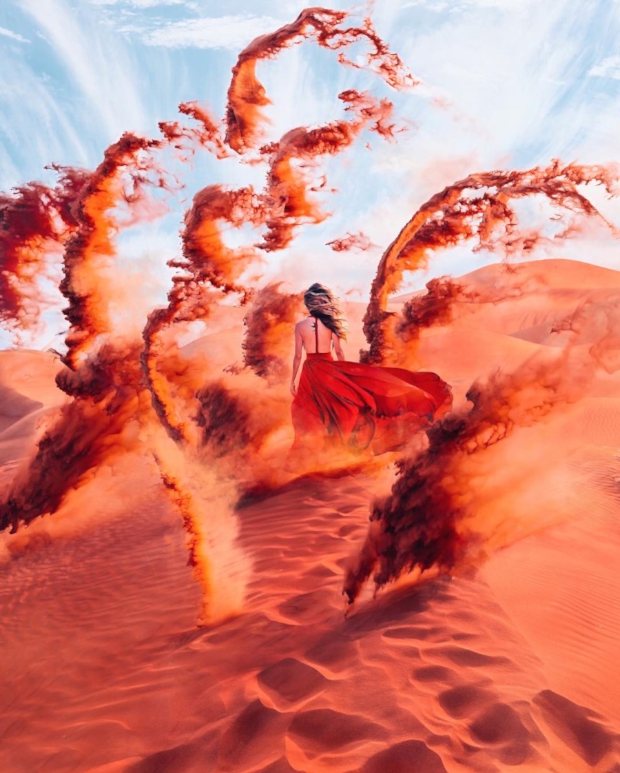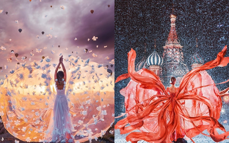 러시아의 사진 작가 '크리스티나 마케바(Kristina Makeeva)'는 전 세계의 아름다운 장소들을 돌아다니며 그냥 보기에도 아름다운 배경에 화려한 드레스를 입은 여성을 접목시켜 마치 판타지 소설 속에 한 장면과도 같은 화려한 연출을 하면서 SNS 등을 통해 크게 화제가 되었던 사진작가였죠. 마케바는 놀라울 정도로 선명한 색상과 화려한 의상을 입고 포즈를 취하는 여성을 통해 아름다움과 아름다움이 만났을 때 어떤 효과를 나타내는지를 잘 보여주고 있습니다.