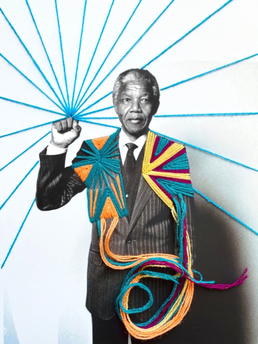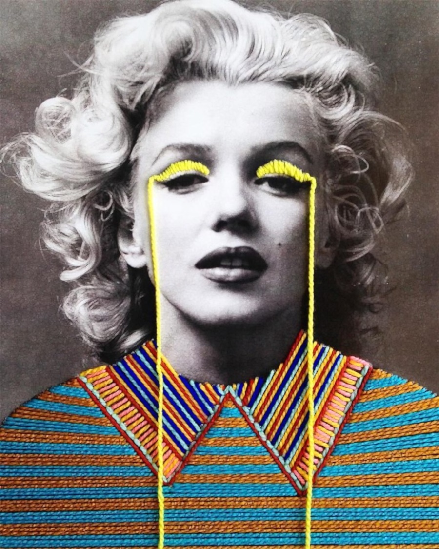 오늘 소개해드릴 멕스코 출신의 '빅토리아 빌라사나(Victoria Villasana)' 역시 새로운 형태의 콜라보 작품으로 화제를 얻고 있는 주인공입니다. 섬유 예술가인 그녀는 다양한 흑백 사진위 형형색색의 다양한 실로 입체감을 살리는 독특한 작품을 만들면서 주목을 받기 시작했죠. 그녀는 흑색 사진 위에 형형색색의 실을 통해 흑백사진 속 주인공들의 메시지를 표현하고 싶었다는 말을 전하기도 했습니다. 그렇다 보니 그녀의 작품 속에 등장하는 인물들은 누구나 알고 있는 유명인들이라고 할 수 있죠.