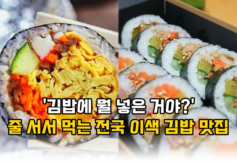 하지만 최근에는 평범한 김밥을 거부한 다양한 속재료는 물론이고 한 줄에 1만 원이 넘는 김밥까지 등장을 하면서 "도대체 김밥에 무슨 짓을 한 거지?" 나오고 있는 상황인데요. 그래서 오늘은 전국에서 맛있다고 소문난 이색적인 맛을 자랑하는 김밥 맛집을 알아보려고 합니다. 과연 이색 김밥 맛집에서는 김밥에 어떤 재료들을 사용하고 있는 걸까요?
