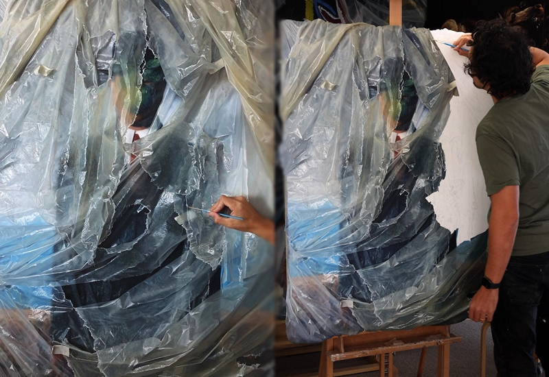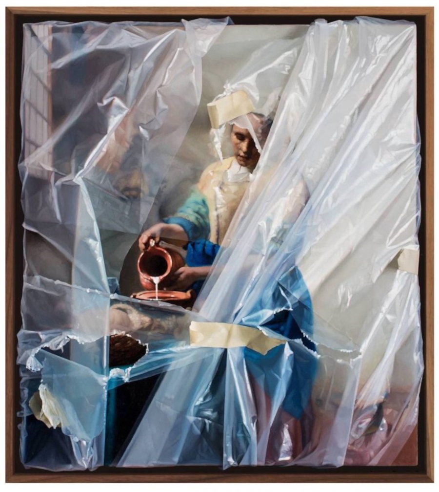 2001년 미국 캘리포니아의 'Westmont College'에서 미술 학사 학위를 취득한 'Robin Eley'는 사진보다 더 사진같은 그림을 그리는 '극사실주의(Hyper-Realism)' 화가로 많은 이들에게 화제가 되고 있는 아티스티입니다. 그가 그리는 극사실주의 작품들은 놀랍게도 명화를 감싸고 있는 비닐을 포함한 작품들이죠. 'Robin Eley'는 그림 위에 찢어딘 비닐이 있는 것처럼 정교하게 그림을 묘사하면서 사람들로 하여금 정말 비닐이 있는듯한 시각적인 착시 효과를 만들어내고 있습니다.