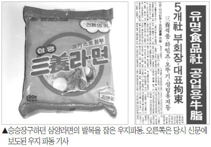 하지만 신라면 1등 공신은 삼양라면의 '우지파동?'