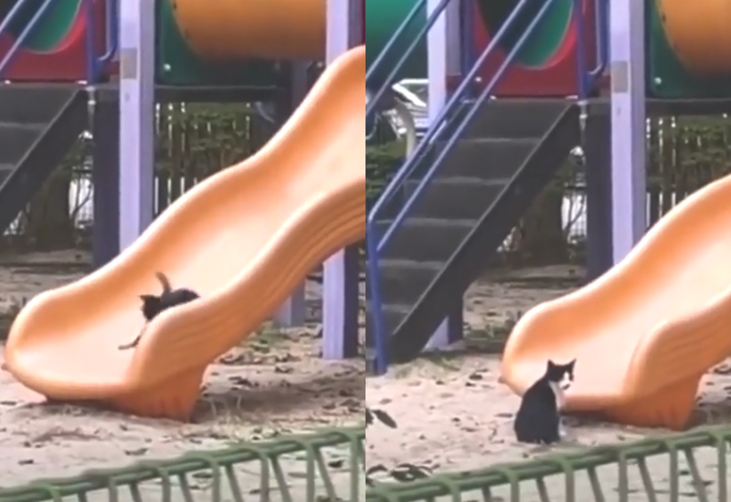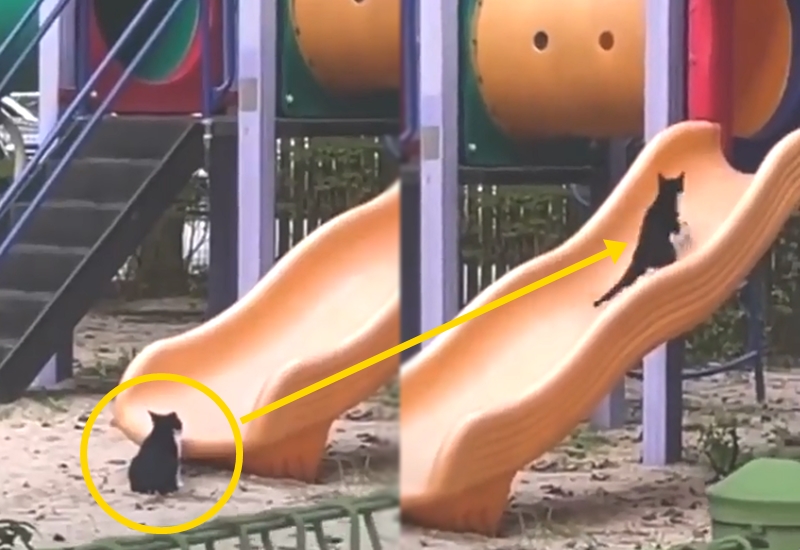 실제로 네티즌이 공유한 동영상속에서는 홀로 미끄럼틀을 타고 올라가 다시 내려오는 행동을 몇차례 반복하는 고양이의 모습이 담겨 있습니다. 아마도 낮에 아이들이 미끄럼틀을 타고 노는 모습이 재밌어 보였는지 모두가 떠난 놀이터에서 미끄럼틀의 재미에 빠졌을 거라는 생각이 드는데요.