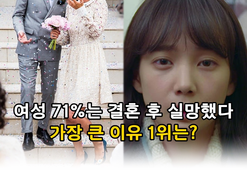 설문조사에 참여한 각 260명의 남녀의 반응을 살펴보면 남녀의 대답은 크게 엇갈렸다고 합니다. 특히 여성의 반응이 주목이 되었죠. 여성들은 결혼 후 '기대에 훨씬 못 미쳤다(51.2%)'의 반응을 보였으며, '결혼 후 연애 때는 몰랐던 또 다른 단점을 알게 되었다(20.4%)'등의 반응을 보이며, 막상 결혼해 보니 실망했다는 응답이 무려 71.6%로 과반수 이상의 여성들이 결혼 후 배우자 혹은 결혼에 실망을 했다는 걸 알 수 있었습니다.