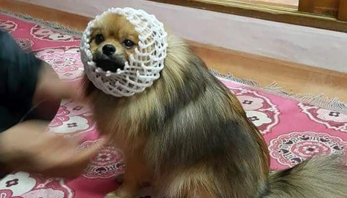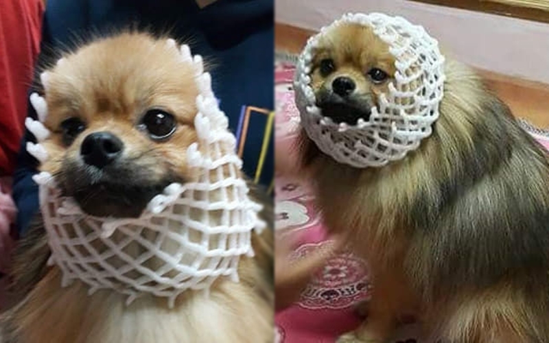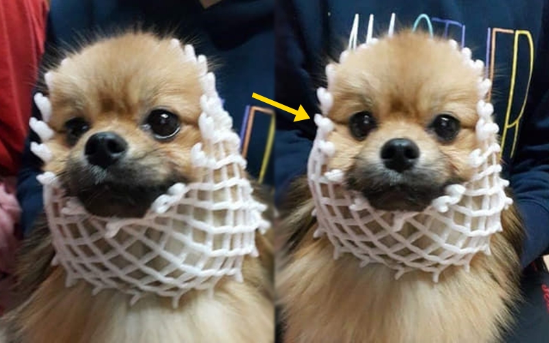 과거 '사고치는 댕댕이에게 할머니가 벌을 줬습니다.'라는 제목으로 많은 네티즌들 사이에서 화제가 된 사연으로, 당시 사진과 함께 얼굴에 과일을 감싸는 망을 감싸고 있는 강아지의 사진이 함께 공개가 되었습니다.