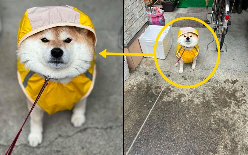 네. 맞습니다. 이 댕댕이는 산책을 가고 싶지 않았던 거죠. 아마도 하루에 한 번은 꼭 산책을 시켜야 한다는 생각으로 인해 강제적으로 비 오는 날 우비까지 입은 거 같은데요. 아마도 네티즌은 평소 산책을 좋아하던 댕댕이가 비가 와도 산책을 나가고 싶어 할 거라는 생각에 우비까지 입힌 거 같습니다.