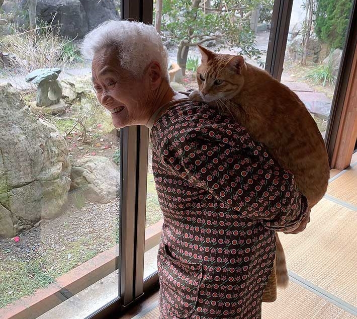 할머니에게는 어쩌면 노년에 무료함을 즐겁게 보내도록 함께 해주는 고양이가 감사한 존재일지 모를겁니다. 그래서 이렇게 고양이가 자신에게 애교를 부리고 자신에게 딱 달라붙는 것 자체만으로도 즐겁다고 느끼시는 거 같은데요.