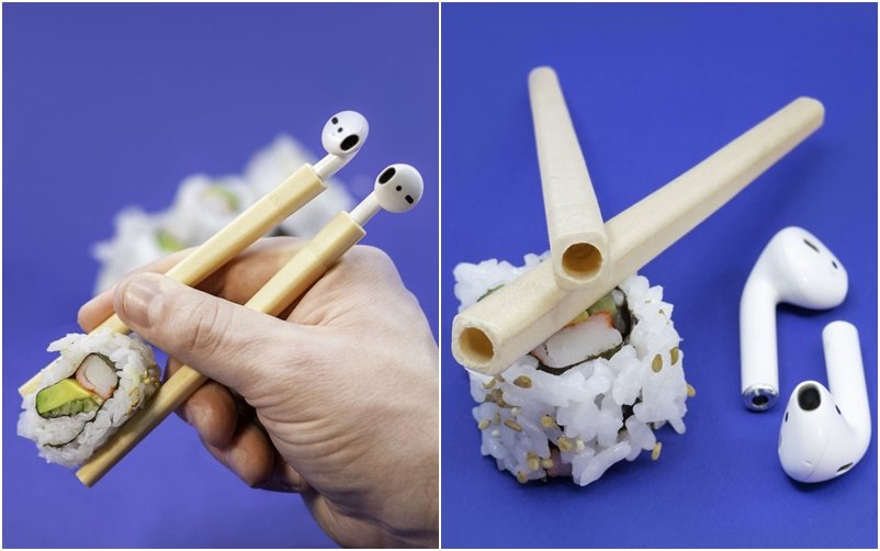 그가 디자인한 제품중에는 에어 팟을 위한 젓가락도 있습니다. 분실 위험성이 높은 에어 팟의 분실 위험도는 낮추는 동시에 어느 장소에서든 젓가락으로 활용이 가능하도록 만든 이 제품은 창의성과 아이디어는 좋지만 사실 실용성면에서는 활용되기에는 무척 어려운 디자인이죠.