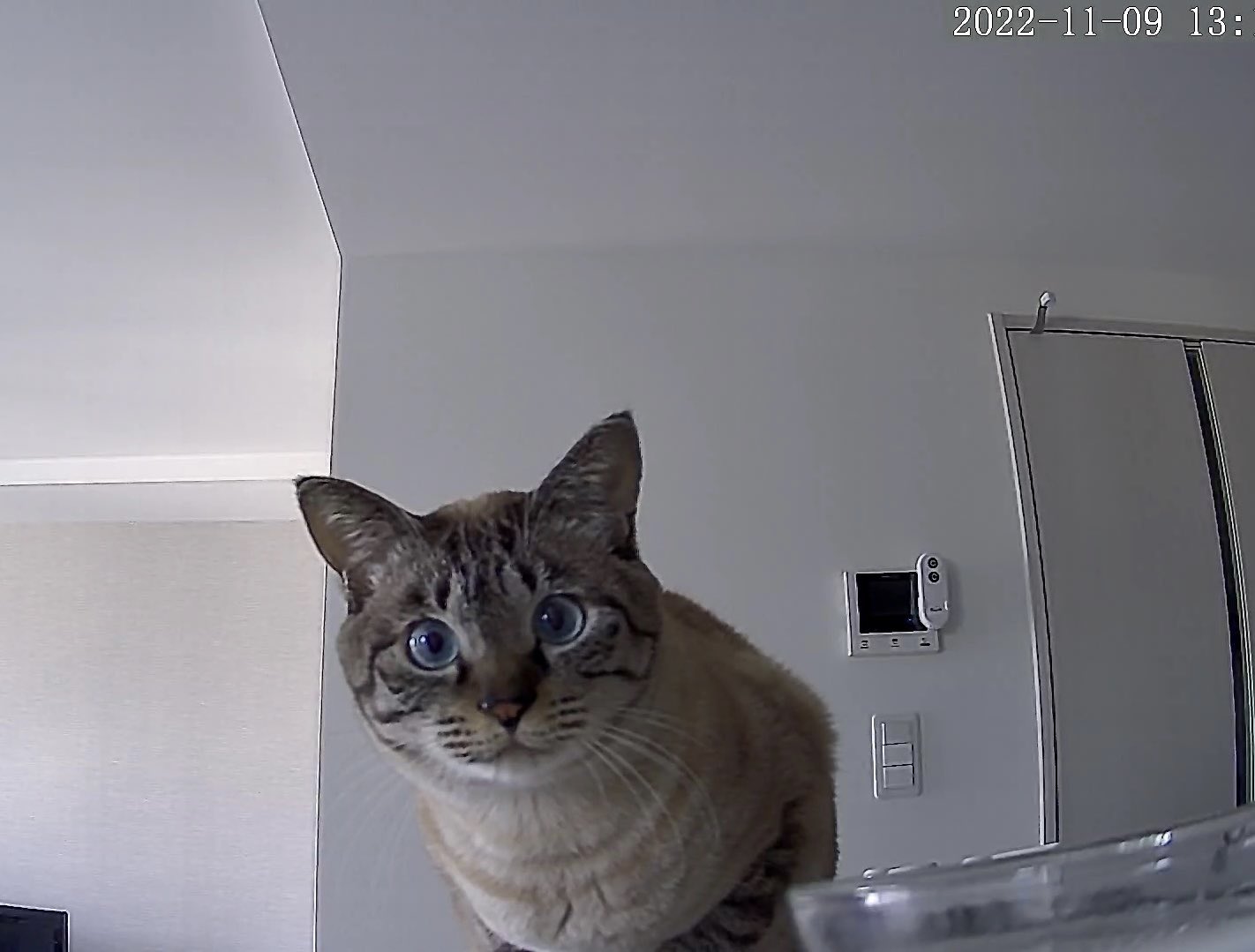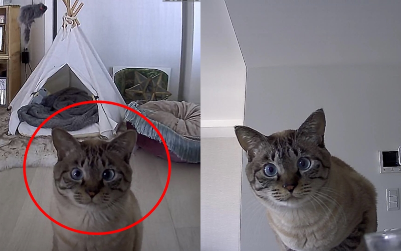 이에 평소 집안에 설치해둔 CCTV를 통해 고양이를 확인해 보기 시작했다고 합니다. 그러자 '모네'는 평소 정해진 시간에 식사가 나오지 않자 카메라를 향해 애처로운 눈빛으로 마치 "왜 밥이 안 나오지? 집사가 밥을 잊었나"라는 눈빛을 보내며 "나 배고픈데..."라는 사인을 보내기 시작했죠.