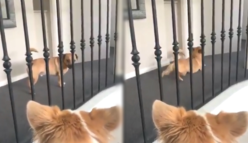 동영상속 강아지의 모습은 절름발이를 연상시키는 듯한 행동을 취하고 있었다고 합니다. 웰시코기 뒤를 절름발이처럼 따라가던 강아지는 이내 영화 <유주얼 서스펙트>를 연상시키는듯 멀쩡하게 걸었다고 하는데요. 그리고 이내 웰시코기를 쳐다보았다고 합니다.