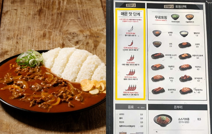 일본식 카레 매장인 아비코의 경우 일본 음식이지만 한국 음식으로 소개된 이유로는 일본 현지에서는 이렇게까지 맵게 카레를 먹지 않기때문이라고 하는데요. 유독 한국에서만 제일 매운맛을 먹는다고 합니다. 이 카레를 먹으면 숨을 헐떡이게 만들고 정신이 몽롱해진다고 합니다.