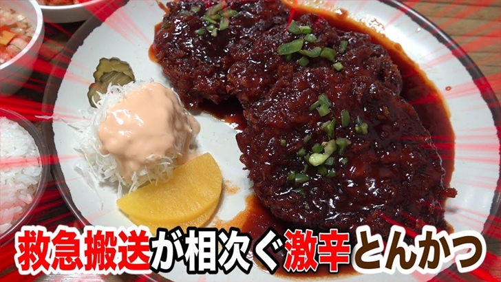 이름 자체에서 풍기는 <디진다 돈까스> 20분안에 돈까스를 전부 먹을 경우 명예의 전당에 오르는건 물론이고 상금까지 주는 이 돈까스의 경우 엄청난 매운맛으로 성공하는 사람이 거의 없을 정도라고 합니다. 특히 이 돈까스를 먹을때에는 위장약과 더불어 우유는 필수라고 합니다.