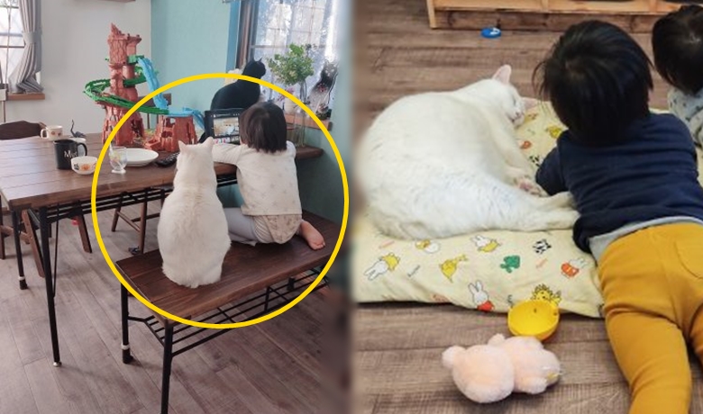 네티즌은 평소에도 해당 고양이와 자녀는 친구처럼 잘 지낸다고 합니다. 의자에 앉아 같이 시간을 보내는 건 물론이고 때로는 아이의 장난감 놀이에 희생(?)도 해준다고 하죠. 그리고 어린 자녀가 소파에서 잠들 때문에 이렇게 고양이는 자녀의 다리를 붙들고 같이 잠을 잔다고 합니다.