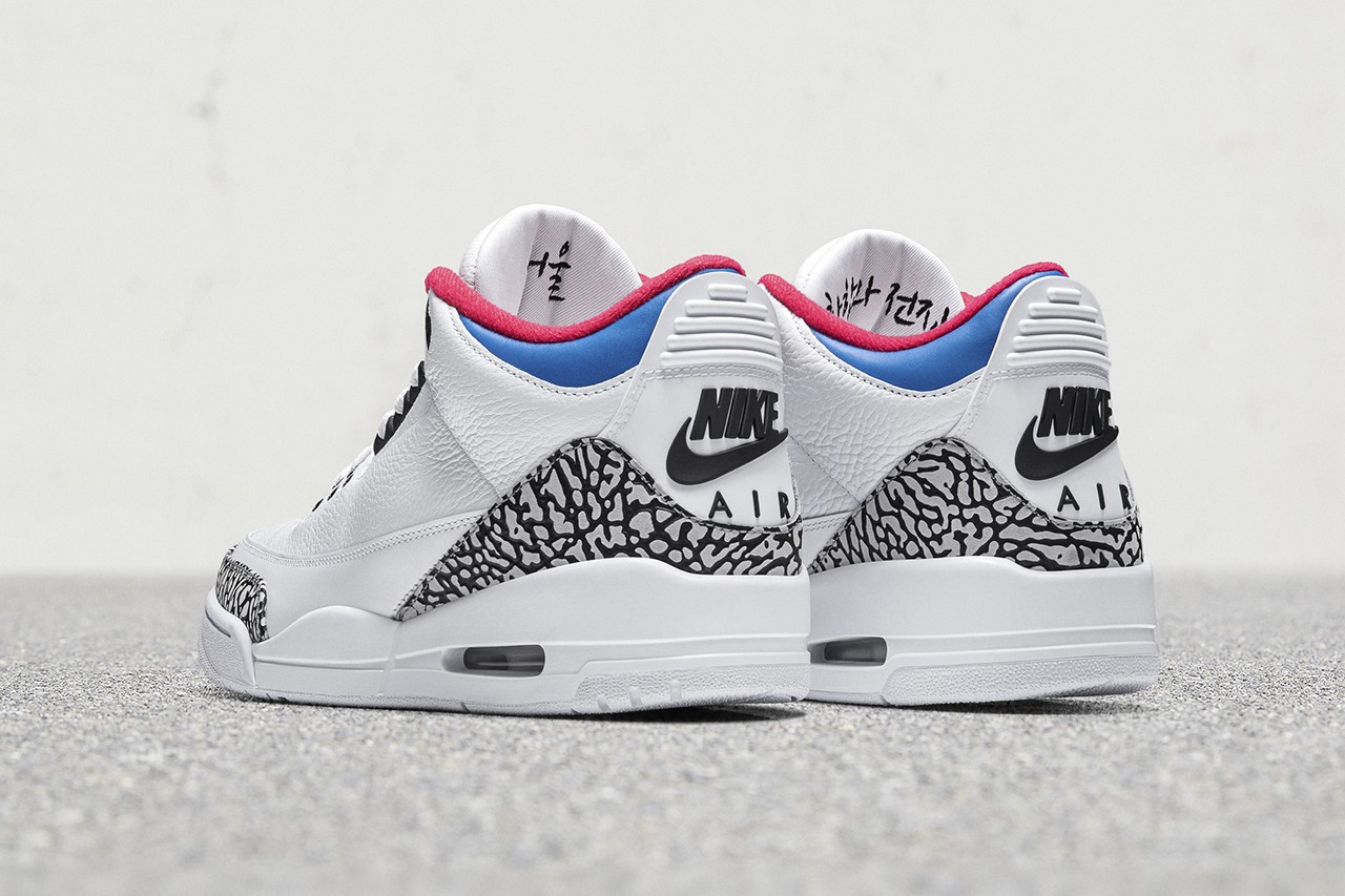 '에어 조던 3 서울'은 제품명에서도 느껴지듯 태극기에서 영감을 받은 디자인 디테일이 포인트인 제품으로, 태극기의 흰색 바탕을 전체 색깔로 정하고, 태극 문양의 파란색과 빨간색은 발목을 감싸는 삭 라이너로 적용된 제품으로 좌, 우측 설로 안쪽에 1988년 올림픽 개최 도시인 '서울'과 당시 올림픽의 슬로건이었던 '화합과 전진'이라는 문구를 한글로 새긴 게 특징입니다.