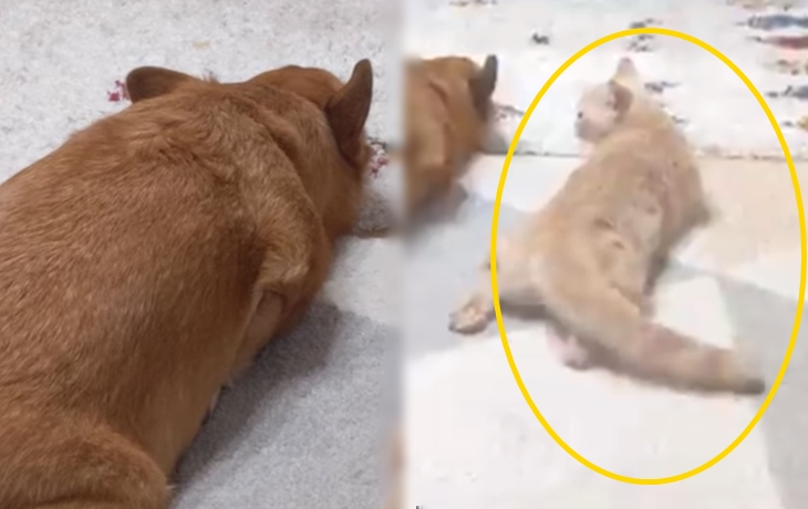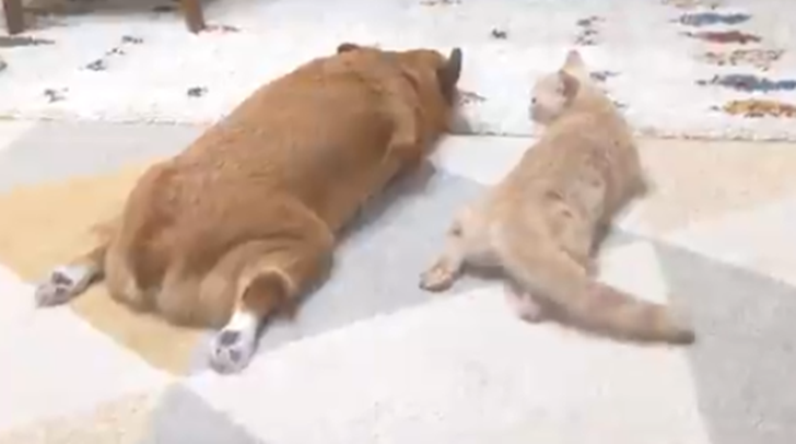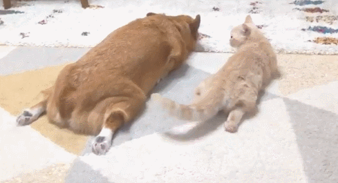 이어 그 모습을 동영상으로 담기 시작했다고 합니다. 그런데 놀랍게도 강아지의 모습을 본 고양이가 옆에 같은 자세로 눕더니 마치 강아지를 위로 하는듯한 포즈를 취했다고 하는데요. 오랜만에 강아지와 함께 오랜 시간을 보냈던 네티즌은 연휴가 끝나는걸 마치 강아지가 안듯한 모습에 약간은 미안한 마음이 들었다고 합니다.