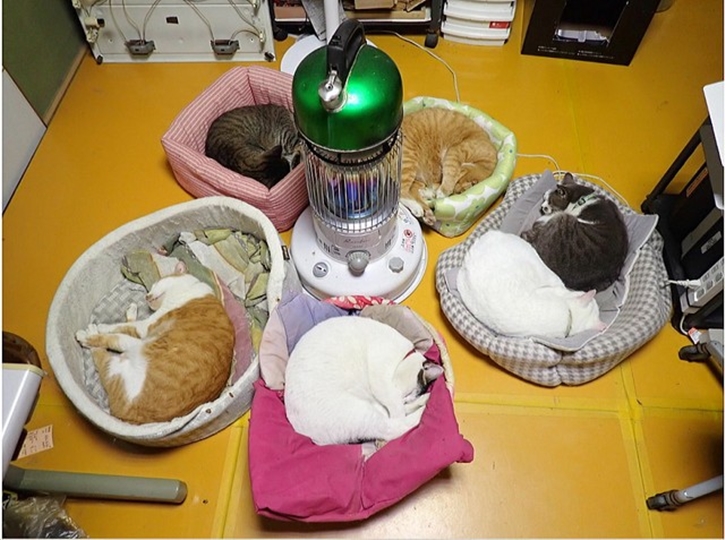 어느 날부터는 집안에 모든 고양이들이 난로 주변에만 모이는 걸 본 네티즌은 고양이의 잠자리를 난로 옆으로 옮겨 주었다고 합니다. 총 7마리의 고양이를 키우고 있는 네티즌은 난로 주변에서 따뜻하게 잠자고 있는 고양이들을 보면서 흐뭇했다고 합니다.
