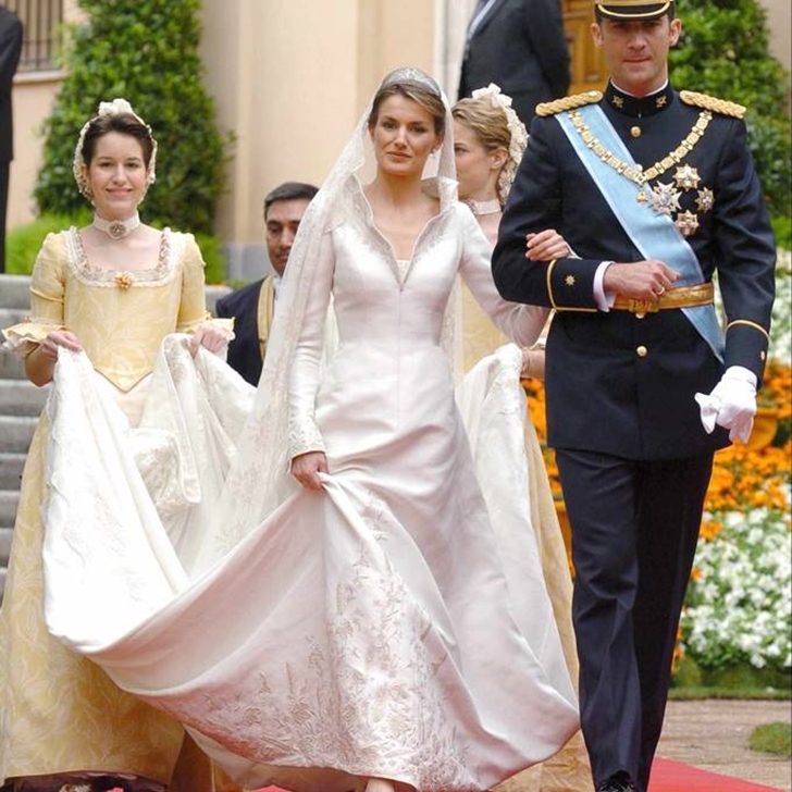 스페인의 레티지아 왕비가 2004년 펠리페 국왕과의 결혼식 당시에 입었던 웨딩드레스의 경우 600만 파운드(약 91억 6천만 원)의 웨딩드레스로 역대 가장 비싼 웨딩드레스 1위라고 합니다. 당시 이 드레스는 로열 꾸띄르에 마누엘 페르테 가즈가 디자인한 드레스로 금실을 활용해 비단에 수를 넣은 게 특징이라고 하는데요. 티아라의 경우에는 1962년 시어머니인 소피아 왕비가 후안 카를로스 1세 왕과의 결혼식 당시 사용했던 걸 그대로 사용했다고 합니다.