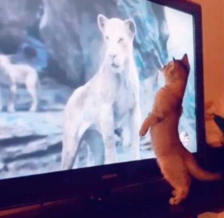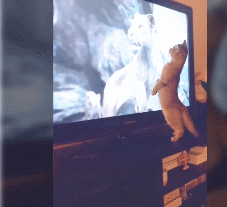 TV로 라이언 킹을 시청하고 있던 네티즌은 자신이 키우고 있던 고양이가 TV속에 등장하는 사자를 본 후 조금씩 반응을 보이기 시작했다고 합니다. 그리고 이내 TV 앞까지 점령하면서 좀 더 과격한 모습을 보였다고 하는데요. 이에 네티즌은 그 모습을 동영상으로 담아 자신의 동영상 계정에 공유를 했다고 합니다.