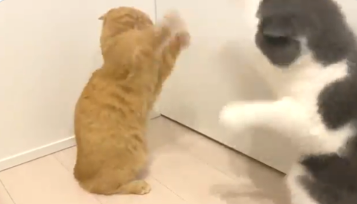 이 네티즌은 어느 날 자신이 키우고 있던 여러 마리의 고양이 중 한 마리가 구석에서 홀로 그루밍을 즐기고 있었다고 합니다. 이에 다른 고양이가 나타나 홀로 그루밍을 하는 고양이의 등을 살짝 건드리기 시작했다고 하는데요. 하지만 이를 예민하게 받아 들었던 고양이는 마치 자신은 화가 났다는 듯한 행동을 했다고 합니다.