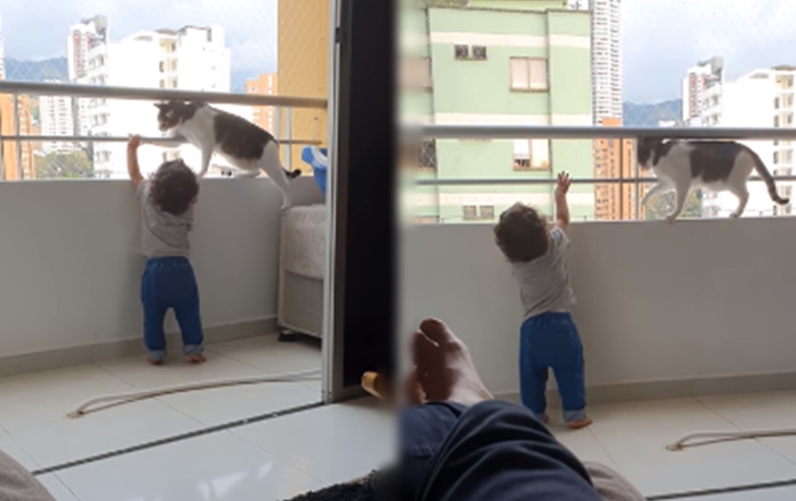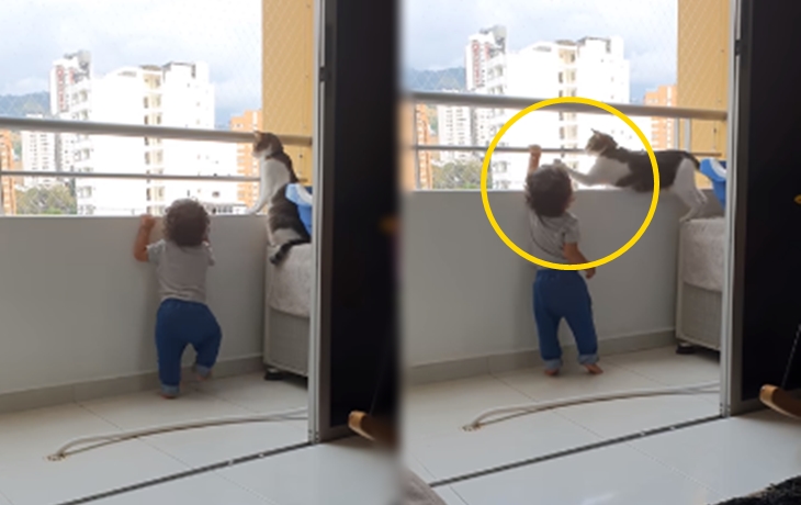 다행히 해당 베란다에는 방충망이 설치되어 있어 실제로 아이가 위험에 처한 적은 없다고 합니다. 하지만 아이의 행동에 위험을 감지한 고양이의 행동은 많은 네티즌들 사이에서 감동이 되고 있다고 하는데요. 실제로 해당 영상 속 고양이는 아이가 난간에 손을 올리는 행동을 할 때마다 아이의 손을 난간에서 떼어내기 위해서 노력을 하고 있다고 합니다.