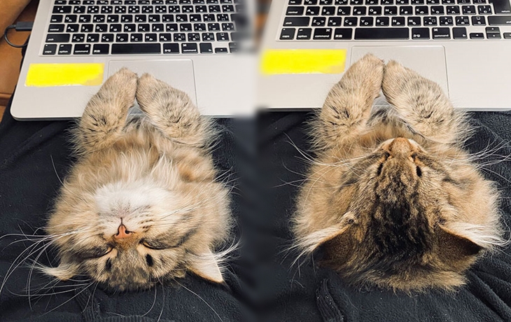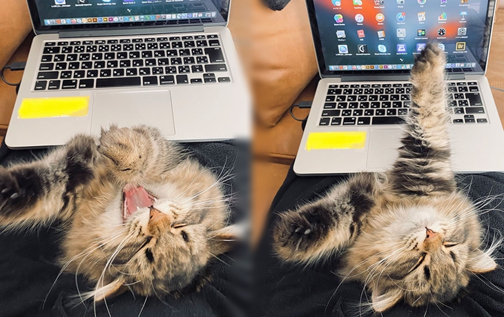 그렇다 보니 집사가 어디를 가든 집안에서 항상 집사를 따라다녔다고 합니다. 심지어는 일을 하기 위해 노트북 앞에 앉으면 집사의 무릎에 앉아 애교를 부렸다고 하는데요. 이런 고양이 때문에 네티즌은 제대로 일을 할 수 없다며 재택근무의 가장 큰 단점은 바로 고양이라는 사연을 공유하게 되었다고 합니다.