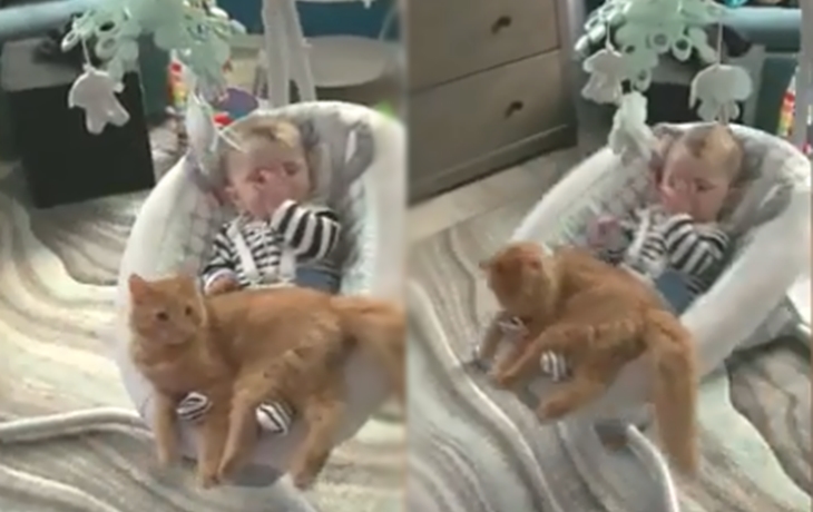 한 네티즌이 유튜브를 통해 공개한 동영상속에는 어린아이와 함께 고양이가 매우 친밀한 모습을 보이고 있다고 합니다. 동영상을 공개한 네티즌은 부엌에서 잠시 음식을 찾기 위해 몇 분 동안 아기를 홀로 두고 떠났다고 합니다.