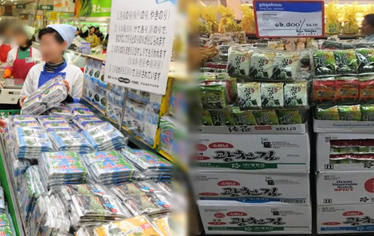특히 한국을 방문한 일본인들 사이에서 김은 매우 중요한 쇼핑 리스트라고 합니다. 'Laver'라고 외국인들 사이에 알려진 김은 특히 배우 하정우의 먹방짤을 통해 더욱더 유명해졌다고 하죠. 특히 참기름과 소금을 이용해 만든 김의 경우에는 다른 나라에서 생산되는 김의 비해 특이한 조리법으로 인해 더 인기가 높다고 합니다.