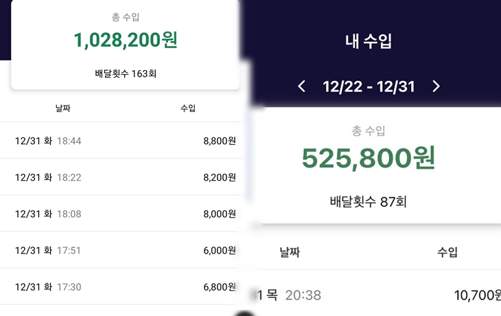 하지만 일부에서는 지역별에 따른 단가 및 배달 건수의 차이가 크고 처음 이벤트성 단가를 제외하고 나면 실제로 받는 수익은 많지 않다는 후기들이 생겨나기 시작하고 있다고 합니다.