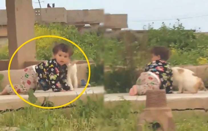 하지만 아이가 기어가는 곳은 조금만 잘못 발을 내딛으면 위험한 곳으로 함께 있던 고양이는 아이가 떨어지지 않도록 위험한 순간에 필사적으로 막고 있다고 하는데요.