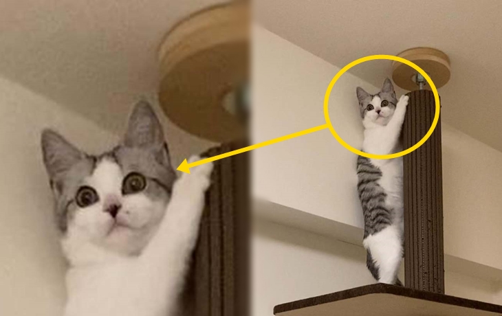 실제로 네티진이 공유한 사진 속에는 캣타워 제일 꼭대기에 올라 캣타워를 꼭 붙들고 있는 고양이의 모습이 담겨 있다고 합니다. 심지어 고양이는 지진에 크게 놀랐는지 눈을 크게 뜨고 한참 동안 캣타워에서 네티즌의 언니만 바라보았다고 합니다.
